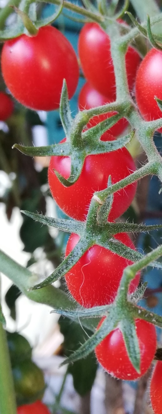 Alte Deutsche Cherry Tomate, rote runde, süße, fruchtige, aromatische früh reifende Früchte, 2- 3,5 cm groß, bis 25g schwer, zarte Haut, Massenträger, Pflanze-1,5- 1,8m hoch
