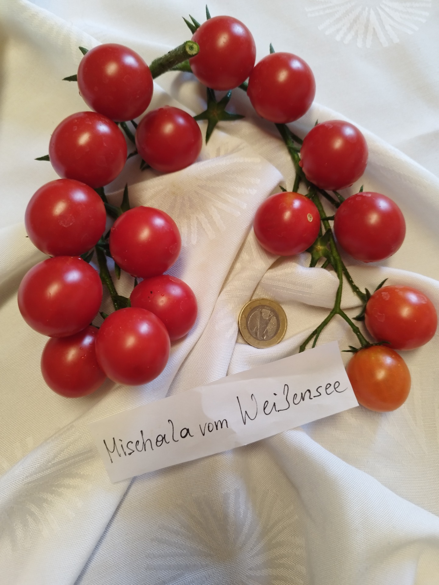 Besonders süßs, rote, geschmackvolle Cocktailtomate 1,8m hoch, Frucht 2-3cm im Durchmesser, dünne Schale, ertragreich, frühe Sorte,