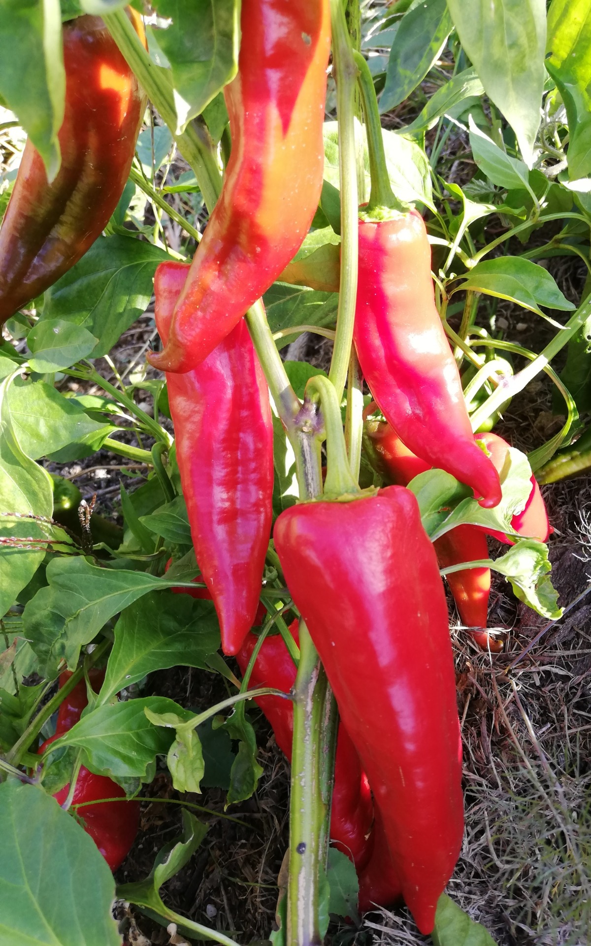 Gemüsepaprika, von grün auf rot abreifend, sehr aromatisch,