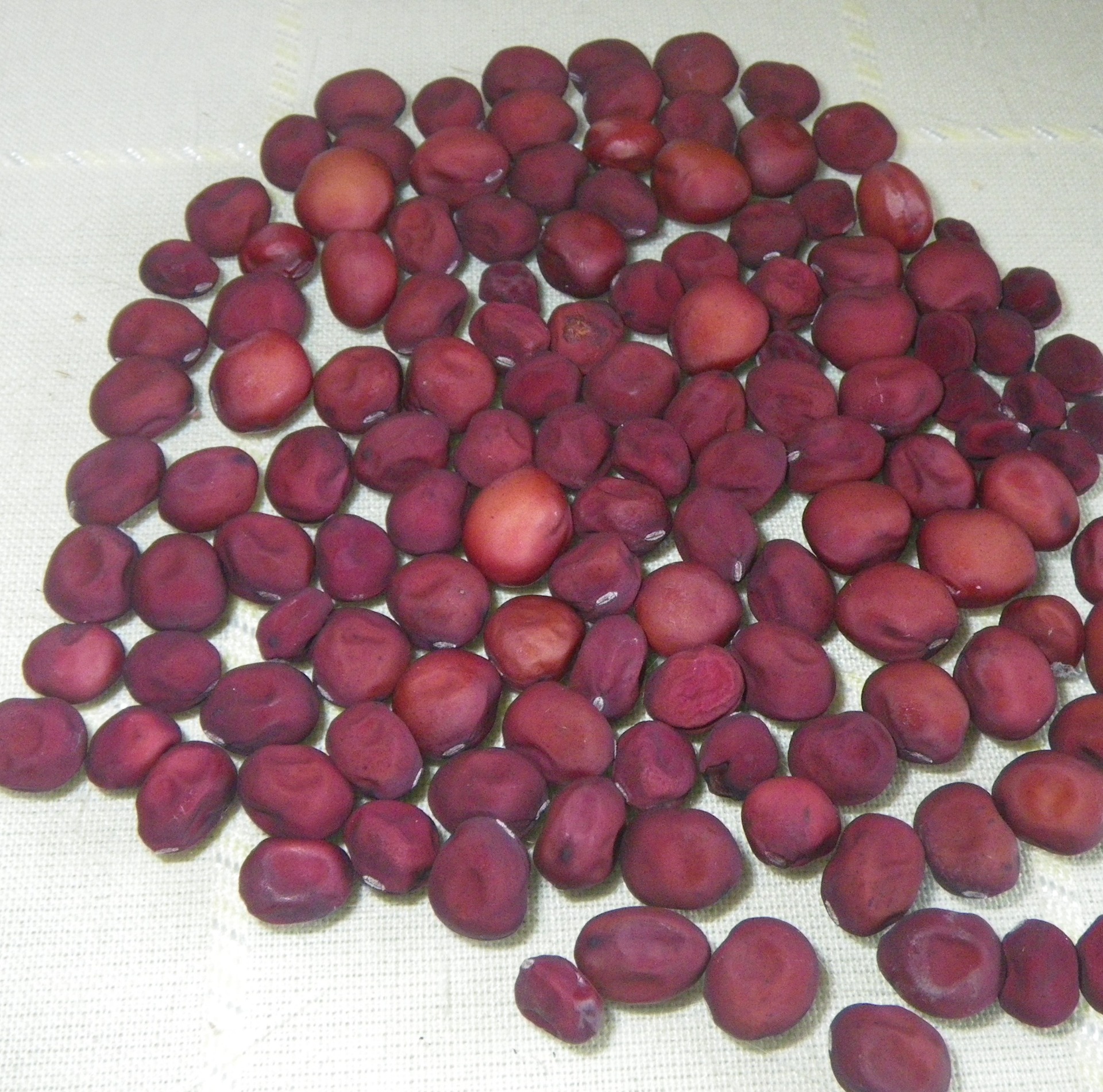 Rote Erbse aus Pischelsdorf Palererbse- Trockenerbse -wird über Nacht in Wasser eingeweicht - gekocht und gegessen, für Suppen Eintöpfe.. ,1,5m hoch, grüne Schale, dunkelrote Körner, lila Blüten Direktsaat :ab Ende März Wuchshöhe 1,5 bis 1,8 m